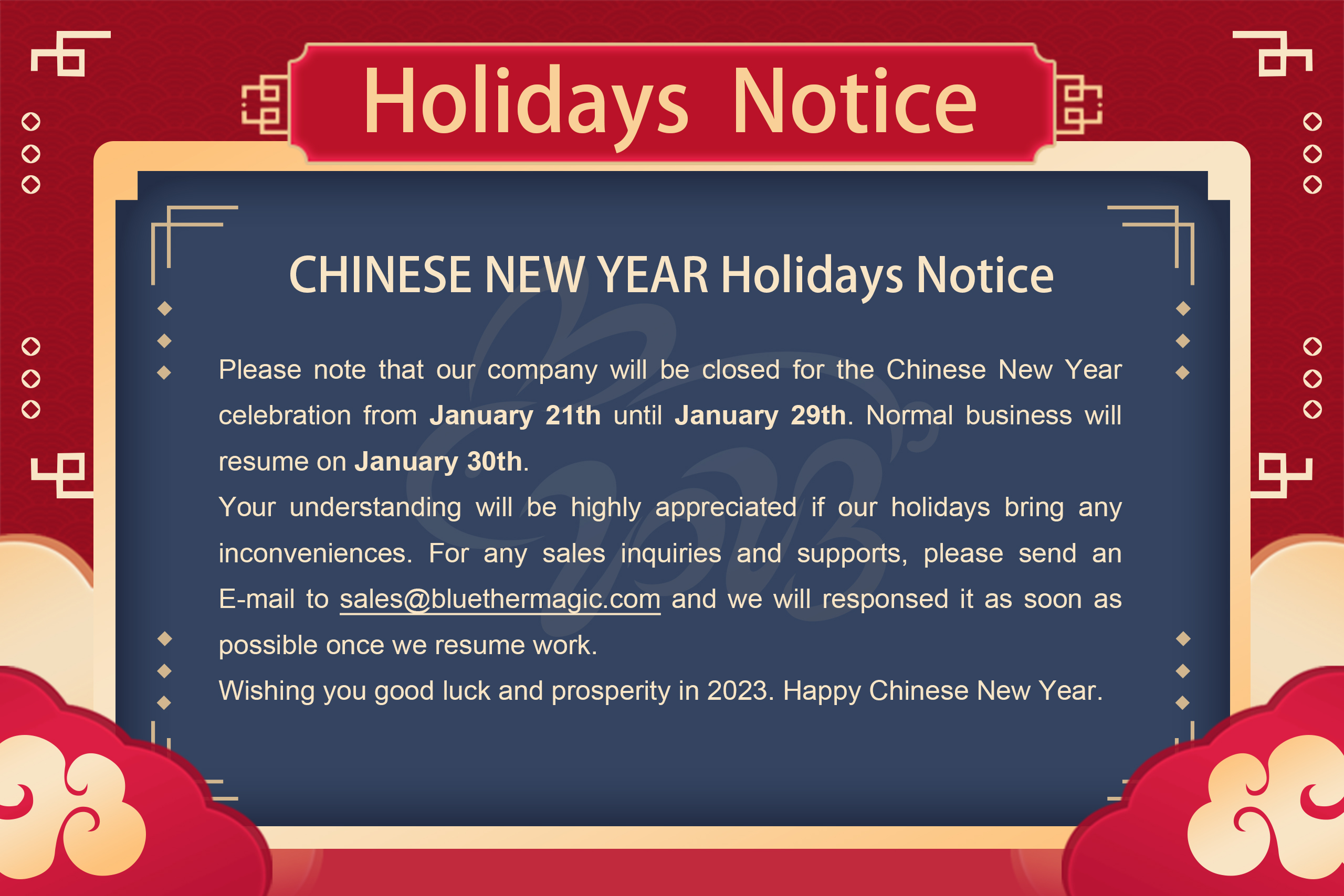 Chinese New Year Holidays Notice